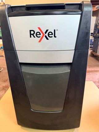 Trituradora de papel automática Rexel Optimum AutoFeed+ 50X. - Capacidad de 50 hojas. - Nivel de seguridad P4. - Tiempo de funcionamiento continuo de 10 minutos. - Papelera de 20L.