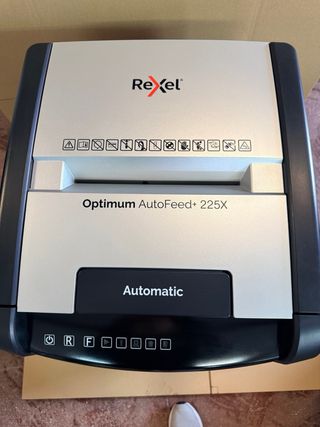Trituradora de papel Rexel Optimum Auto Feed+225. Diseñada para un uso eficiente y cómodo. - Capacidad de trituración automática. - Modelo: Auto Feed+225. - Marca: Rexel.
