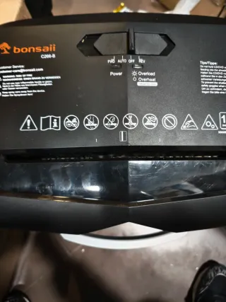 Trituradora de papel marca Bonsaii, modelo C266-B. La mejor que he utilizado. - Capacidad máxima de 12 hojas. - Indicador de sobrecarga y sobrecalentamiento. - Función FWD, AUTO, OFF y REV. - Funciona 60 minutos continua. - Destruye 12 hoja de papel, DVD, negativos y Diapositivas incluso con marco. - Comprada el 29 de Octubre 2025. Usada un mes y medio. - En sus caja. Escucho ofertas razonables.