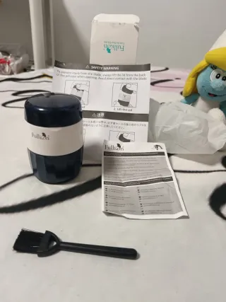 Triturador eléctrico de pastillas marca Pill Mill. Incluye el cuerpo principal, cable de alimentación, manual de instrucciones, cepillo de limpieza y paño. - Diseño compacto y moderno. - Fácil de usar.