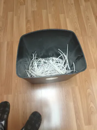 Trituradora de papel profesional, ideal para oficina. Diseñada para un uso intensivo y seguro. Corte de muy alta calidad P4 Destruye tarjetas de crédito, CD, DVD puede trabajar hasta 60 min contínuos sin sobrecalentarse, una pasada! 122 € en amazon Proviene de un regalo de un proveedor, totalmente nueva y en su caja sellada Recogida en mano en Coslada o envío a través de Wallapop Precio negociable NO cambios - Capacidad de trituración: 14 hojas. - Diseño moderno y compacto. - Ventana para visualizar el nivel de llenado.