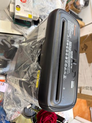 se vende trituradora de papel como nueva.Con su caja e instrucciones.Funciona perfectamente.Viene con papelera.Precio 20 euros
