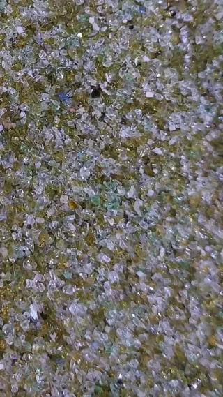Lote de 4 kilos de eco-vidrio triturado, ideal para manualidades o decoración. - Material: Vidrio reciclado. - Color: Multicolor (tonos tierra, blanco, verde y azul). - Tamaño del grano: Pequeño, similar a la arena gruesa.