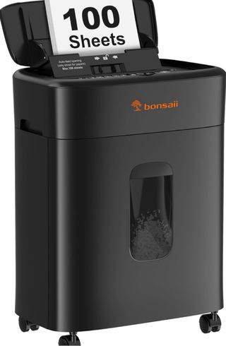 Trituradora de papel de la marca Bonsaii, modelo S123-A EU. Ideal para triturar documentos confidenciales. - Diseño compacto y funcional. - Apta para uso en oficina, escuela y hogar.