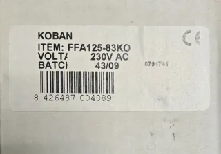 Sirena KOBAN. - Modelo: FFA125-83KO - Voltaje: 230V AC - Lote: 43/09 - Código: 8 426487 004089 - Referencia: 0791741