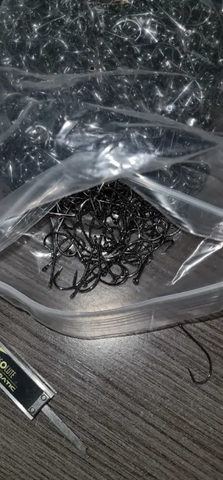 Lote de anzuelos de pesca. Cantidad 100 aproximadamente Tamño 4cm largo - Color negro. - Material metálico.