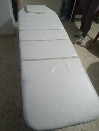 Se vende camilla de estética en color blanco, en perfecto estado y casi sin uso. - Tapicería de polipiel. - Reposacabezas ajustable. - Estructura robusta.