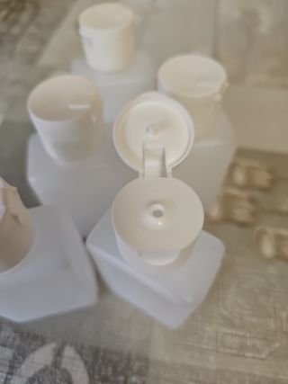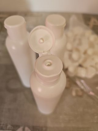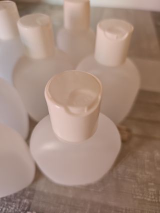 Botella de plástico blanca de 200ml. Con tapón flip. Sin uso. 0,46€/ud. 60uds. disponibles. Precio por 10 uds. Si te interesan más envíame un mensaje.