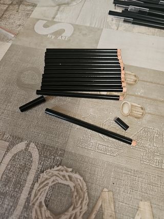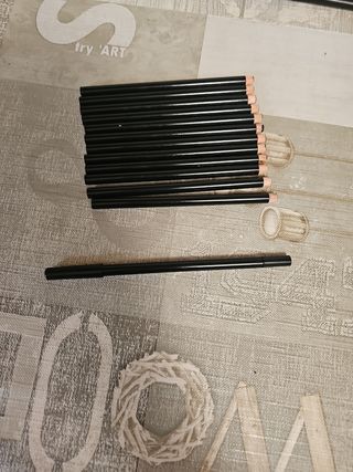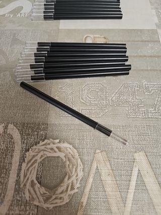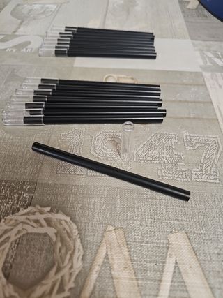 Lápiz hueco de madera con extremo cortado para colocar una tapa. 13cm de largo. Diámetro de 7,65mm. Tapa final negra. 2 paquetes de 12 uds. 1,20€/ud. Precio por un paquete de 12uds. Regalo de 2 tapas traseras en cada paquete.