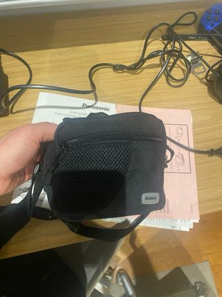 video camara con estuche y cable de alimentacion con instrucciones y cargador bateria. *bateria superficialmente dañada en la esquina segun foto
