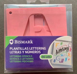 1 Blister Plantillas Letras Mayúsculas y Números (Lettering) 36 piezas en plastico Cada plantilla mide 10,5 cm