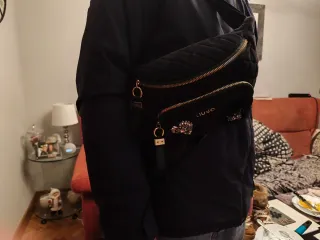 Riñonera de la marca Liu Jo, en color negro y con un diseño acolchado. - Usada una sola vez. - Cierre con cremallera. - Detalle de pedrería. - Logo de la marca visible.