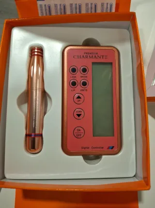 Dermógrafo Charmant II Premium para maquillaje permanente. - Incluye dispositivo digital controller. - Color rosa metálico.
