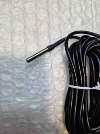 Sonda o Sensor de temperatura para equipo eléctrico. Con cable negro y terminales expuestos - Cable de alimentación negro. - Terminales de conexión expuestos.
