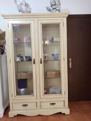 Vitrina de madera maciza, en perfecto estado. - Diseño elegante y funcional. - Ideal para exhibir objetos decorativos o colecciones.