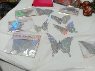 Se venden 6 paquetes de mariposas plateadas para decoración. Son ideales para dar un toque especial a cualquier espacio. - Diseño de mariposa calada. - Acabado plateado iridiscente. - Cada paquete contiene varias mariposas.