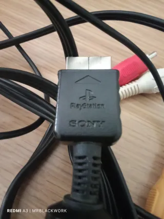 Cable de conexión para consolas PlayStation 1 y 2. - Conector principal PlayStation. - Conectores RCA (rojo, blanco, amarillo).