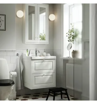 Armario de lavabo TÄNNFORSEN de IKEA, con dos cajones y un diseño elegante. - Medidas: 60x48x63 cm. - Color blanco. Nuevo, en su caja sin abrir.