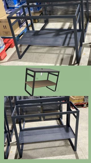 Estructura de lavabos diseño moderno y minimalista. Cuenta con una balda inferior para almacenamiento adicional. - Material: Metal. - Color: Gris oscuro. - Diseño: Patas angulares y balda perforada.