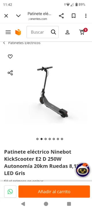 Patinete eléctrico Ninebot KickScooter E2 D, homologado por la DGT con placa identificativa puesta de fabrica Viene listo para circular Lo cambio por bici y algo de dinero o Bien el precio que pongo el patin costó 500 euros - Potencia de 250W. - Autonomía de 20km. - Ruedas de 8,1 pulgadas. - Luces LED. - Color negro y Gris.