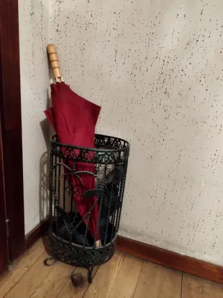 Elegante paragüero de metal forjado con un diseño clásico. Perfecto para mantener tus paraguas organizados. - Color negro