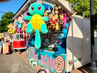 Caseta de tiro de feria montada sobre un remolque. - Estructura robusta para juegos. - Ideal para eventos y celebraciones. Mide 4x2 mm as lanza altura abierto 2,90 documentación 750 kg es de un eje