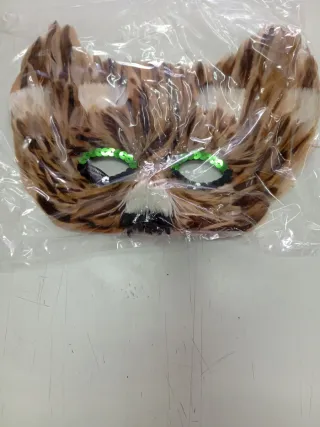 Divertido antifaz con diseño de leopardo, perfecto para fiestas o disfraces. - Decorado con plumas marrones y blancas. - Ojos adornados con lentejuelas verdes. - Detalle de pelaje blanco en la zona de la nariz.