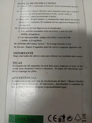 Llavero Test Alcoholemia Alex Bog