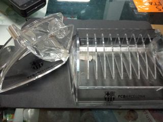Portacedes y portafixo de FCBARCELONA de metacrilato las dos cosas 15€ El portacedes tiene un golpecito en la esquina derecha.