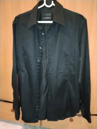 Camisa de manga larga con cuello mao y estampado de rayas verticales. Es una prenda ligera y transpirable, ideal para el día a día. - Material: Mezcla de lino. - Talla: L. - Marca: Primark.
