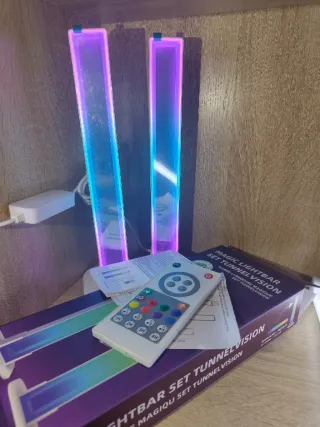 ✨🆕 Totalmente nuevas, sin usar y en su caja original. Dale un toque moderno y futurista a cualquier espacio con este set de 2 barras LED RGB con espectacular efecto visual tipo túnel infinito 🌈🔮 Crean una sensación de profundidad como si la luz se perdiera hacia dentro, dando un efecto de caída o espacio infinito dentro de las barras. Un efecto muy llamativo que no pasa desapercibido ✨ 🎨 Iluminación multicolor RGB con diferentes modos de luz. Incluyen mando a distancia para cambiar colores, ajustar intensidad y seleccionar efectos fácilmente. Perfectas para setup gaming 🎮, dormitorio 🛏️, salón 🛋️ o decoración moderna. 📦 Incl