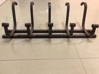 Elegante perchero de pared fabricado en madrra. Su diseño clásico y robusto lo hace ideal para cualquier entrada o habitación. - Material: madrra. - Color: Marrón oscuro. - Diseño: Cuatro ganchos curvos.