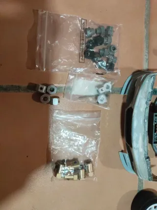 Se vende chasis de wpl d12 solo lo que se ve en las fotos eje trasero metálico uno original para repuestos está roto trani original 4 ruedas de drift paragolpes trasero metálico varios tipos de adaptadores placa base y algún elemento de carroceria