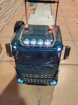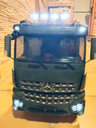 Camión a escala 1/14 de la marca Tamiya. Modelo mercedes arocs 6x4 con multifunción mfc 01 emisora de 6 canales batería caja de cambios metálica de 2 marchas motor 80t con una salida góndola artesanal con rampas funcionales y cabrestante no hago envios debido al tamaño y delicadeza del producto y no me interesan cambios solo entrega en mano