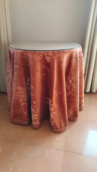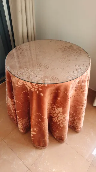 Mesa camilla redonda con cristal y falda