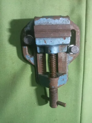 Tornillo de banco compacto, ideal para trabajos de precisión o para tener en un taller pequeño. Su diseño permite sujetar piezas de forma segura. - Cuerpo de metal resistente. - Mordazas con acabado azul y óxido. - Mecanismo de rosca visible.