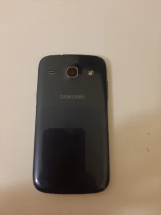 Teléfono móvil Samsung de color negro. - Cámara trasera. - Logo de Samsung en la parte trasera.