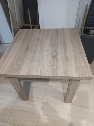 Mesa de comedor con un diseño moderno y acabado en madera. - Patas en forma de V. - Tablero de madera.