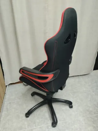 Silla gamer color negra y roja. Con uso pero en buen estado. La tela no esta dañada es de buena calidad. Marca hjh Office