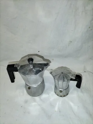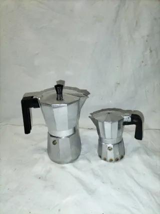Set de dos cafeteras italianas de aluminio. Perfectas para preparar café. - Cafetera grande. - Cafetera pequeña.