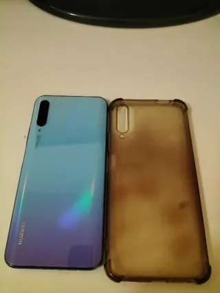 Teléfono móvil Honor con acabado degradado. - Múltiples cámaras traseras. - Logo de la marca visible en la parte trasera.