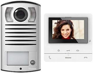 Kit de videoportero Bticino 364613 para vivienda unifamiliar con 2 cables de pared, 1 pulsador externo con timbre y cámara + 1 pantalla blanca a color de 5" para interiores con manos libres, ampliable para dos familias COMPONENTES DEL KIT: El kit está listo para usar e incluye un videoportero interior blanco con pantalla LCD a color de 5" de dos hilos y panel eléctrico con alimentación DIN, 1 pulsador externo, soportes para instalación en pared e instrucciones. 2 años de garantía. MONITOR INTERNO: Pantalla interna Clase 100V16B, de pared, blanca, de 5" a color, con manos libres, intercomunicador 8005543631126