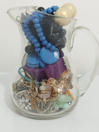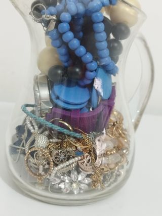 Jarra con joyitas variadas
