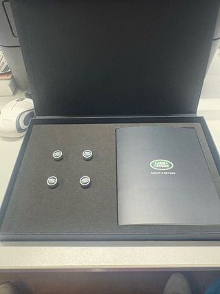 Set de tapones para válvulas de Land Rover. Incluye un folleto. - Diseño con el logo de Land Rover. - Material plateado.