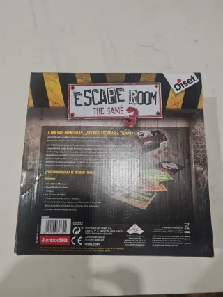 Juego de mesa Escape Room The Game 3 de Diset. Incluye 4 emocionantes escape rooms y una aventura introductoria. Solo usados 2 de los 4. - 4 Escape Rooms + Aventura Introductoria - Temáticas: Titanic, Alicia en el País de las Maravillas, Alba de Zombies, Otra Dimensión - Edad recomendada: +16 años - Jugadores: 3-5 - Duración: 60 minutos - Crono decodificador incluido