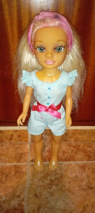Muñeca Nancy. Conserva su vestido original. - Vestido azul claro con detalles rosas. - Lazo rosa en la cintura. - Diadema rosa en el pelo.
