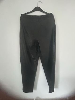 Pantalón NUEVO negro de corte recto, ideal para cualquier ocasión. - Color negro. - Nuevo sin usar. De piel sintética en excelente estado. El interior es de un suave afelpado gris. Cintura elastizada muy cómoda. Bolsillos delanteros laterales.