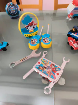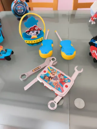 Lote de accesorios de la Patrulla Canina. - Cesta con figura de Marshall. - Dos walkie-talkies. - Herramientas de juego.