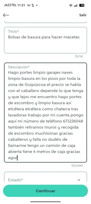 Hago portes limpio garajes naves limpio basura en los pisos por toda la zona de Guipúzcoa el precio se habla con el caballero depende lo que tenga y que lejos me encuentro hago portes de escombro y limpio basura así etcétera etcétera como chatarra tras lavadoras trabajo por mi cuenta pongo aquí mi número de teléfono 671226048 también retiramos muros y recogida de escombro muchísimas gracias caballeros y falta no dudéis de llamarme tengo un camión de caja abierta tiene 4 metros de caja gracias agur