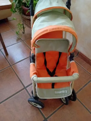 Carrito de muñecas doble, ideal para jugar. - Estructura de metal. - Dos capotas. - Ruedas para fácil movilidad.